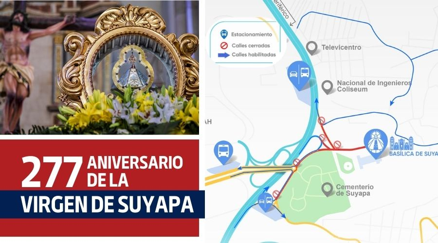 Para el aniversario del 277 aniversario del hallazgo de la Virgen de Suyapa, la Alcaldía del Distrito Central (AMDC), ha informado sobre el cierre planificado de calles en las proximidades de la Basílica y la aldea de Suyapa.