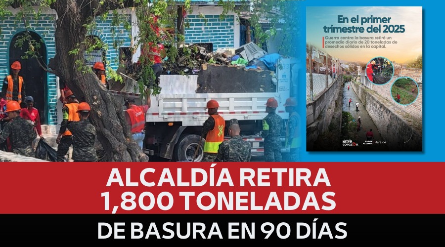 La Alcaldía Municipal del Distrito Central ejecutó con éxito la recolección de aproximadamente 1,800 toneladas de desechos sólidos durante los primeros 90 días del año 2025, como parte del programa “Guerra contra la basura”.
