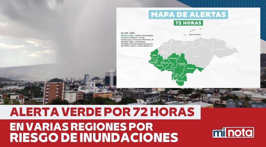 Los departamentos bajo alerta son: Copán, Ocotepeque, Lempira, Intibucá, La Paz, Comayagua, Francisco Morazán, El Paraíso, Valle y Choluteca, a partir de las 8:00 de la noche del domingo 15 de junio.