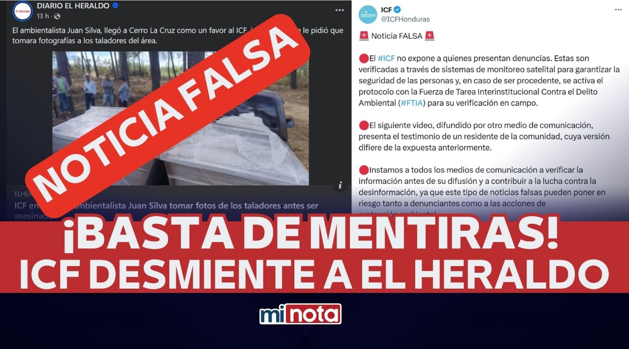 El ICF explicó que las denuncias sobre daños a los bosques no ponen en riesgo a quienes las hacen, porque se revisan con imágenes satelitales. Si se confirma que hay un problema, un grupo especial de seguridad llamado Fuerza de Tarea Interinstitucional Contra el Delito Ambiental (FTIA) va al lugar a investigar. El Heraldo no tomó en cuenta estos procesos y, sin pruebas, quiere culpar al ICF de un hecho muy grave.