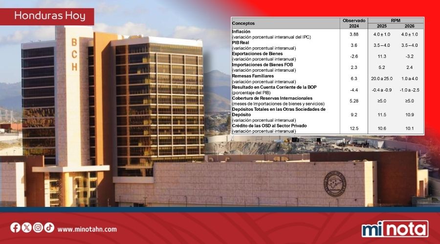 El Banco Central de Honduras (BCH) ha publicado la Revisión de su Programa Monetario 2025-2026, destacando un «dinamismo superior al previsto» en la economía nacional. El informe confirma una revisión al alza del Producto Interno Bruto (PIB), que se proyecta cercano al 4%, un saldo histórico de Reservas Internacionales Netas (RIN) y una inflación totalmente controlada dentro del rango de tolerancia.