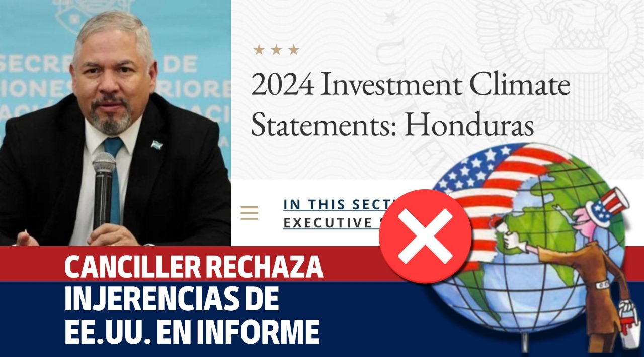 Enrique Reina, canciller de la República de Honduras expreso un rechazo al informe de Clima de Inversiones 2024 emitido por el Departamento de Estado de EE.UU. Denunciando su carácter unilateral y subjetivo. Las declaraciones de dicho informe fue elaborado sin la participación del gobierno y está influenciado por intereses parciales que no reflejan la realidad del país.