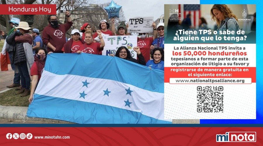 Todos los hondureños con TPS deben afiliarse a la Alianza Nacional del TPS lo antes posible. La inscripción es gratuita y se realiza en el siguiente enlace oficial: https://actionnetwork.org/forms/solicitud-de-membresia-membership-application