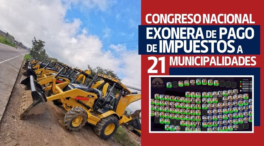 El Congreso Nacional de Honduras (CN), ha aprobado un dictamen que exime del pago de impuestos a 21 municipalidades y a la Mancomunidad de El Higuito, conformada por 15 municipalidades. Para la compra directa de maquinaria pesada, esta iniciativa tiene como objetivo mejorar la infraestructura y los servicios municipales en nueve departamentos del país.