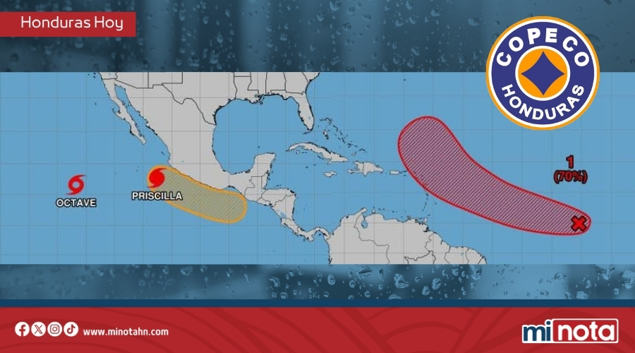 - Huracán Priscilla: Localizado al sur-suroeste de Cabo Corrientes, México, se desplaza hacia el noroeste. No es una amenaza para Centroamérica.