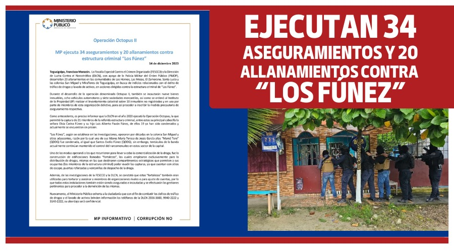 La estructura criminal «Los Fúnez» ha sido objeto de investigación por su presunta participación en actividades ilícitas relacionadas con el tráfico de drogas, así como en el lavado de activos. La operación, que incluyó un total de 34 aseguramientos, tiene como objetivo desarticular esta red delictiva y poner fin a sus operaciones ilegales.