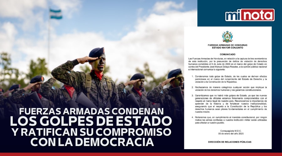 1.- Las Fuerzas Armadas de Honduras, dejaron en claro que condenan cualquier golpe de estado y ruptura del orden democrático y Constitucional de la República.
