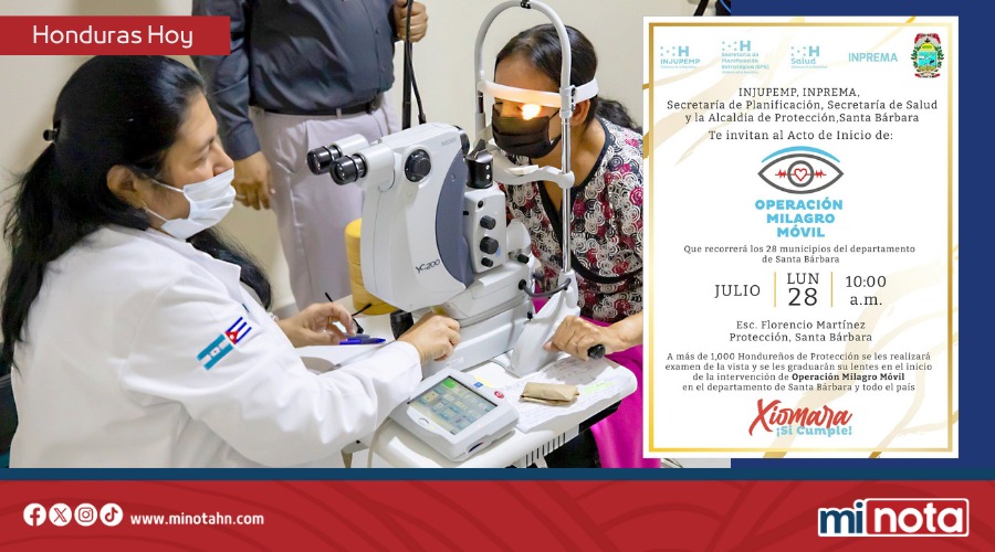 El gobierno de la Presidenta Xiomara Castro lanzará este lunes 28 de julio, en el municipio de Protección, Santa Bárbara, la “Operación Milagro Móvil”.