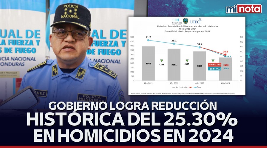 En un momento histórico para el país, la tasa de homicidios se redujo en un 25.30%, marcando la cifra más baja en los últimos 20 años. Este logro refleja el compromiso y las políticas implementadas por el gobierno de la presidenta Xiomara Castro, para combatir la violencia y mejorar la calidad de vida de los hondureños.