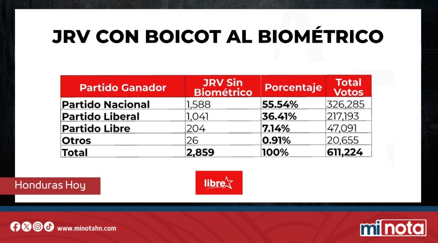 Las primeras inconsistencias revelan un patrón que ya no sorprende al pueblo hondureño: 543,478 votos inflados para favorecer al bipartidismo, todos registrados fuera de la biometría, constituyen el primer gran eslabón del fraude.
