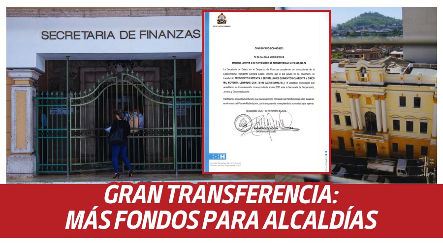 La Secretaría de Finanzas (SEFIN), hará una transferencia de más de trescientos setenta y seis millones de lempiras, que llegarán a 74 alcaldías municipales.