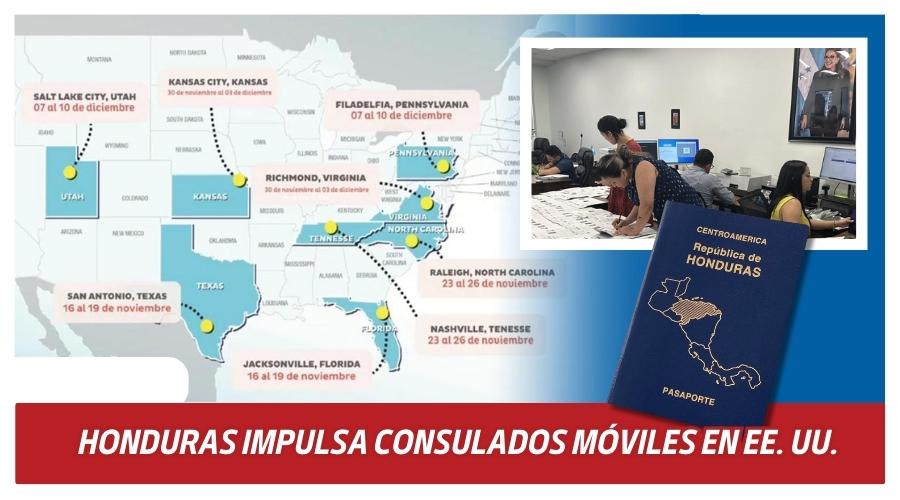 Con el apoyo técnico del Programa de las Naciones Unidas para el Desarrollo (PNUD), el Gobierno de Honduras llevará a cabo la atención a los ciudadanos en ocho consulados móviles, comenzando en Jacksonville y San Antonio del 16 al 19 de noviembre, seguido de Raleigh y Nashville del 23 al 26 de noviembre.