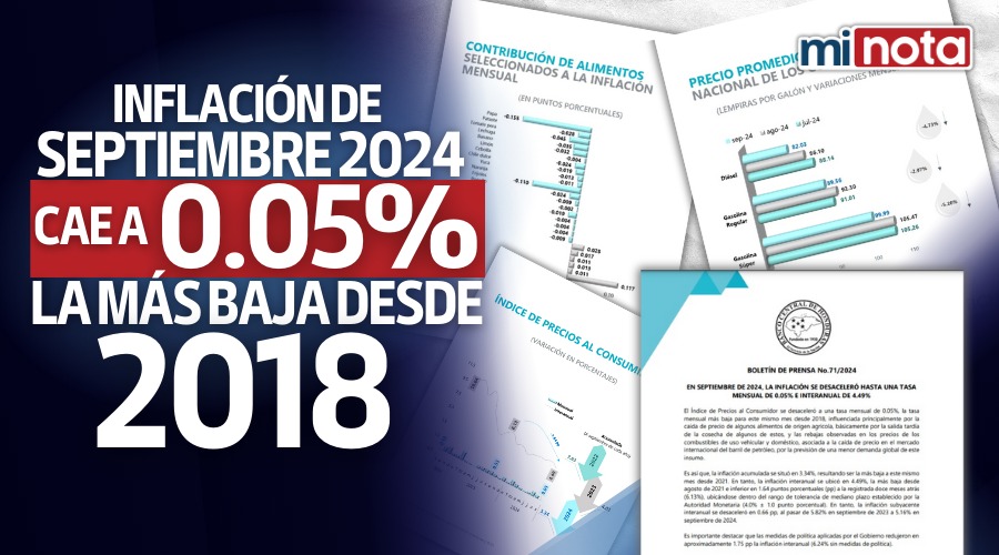 En septiembre de 2024, la inflación mensual se desaceleró a una tasa de 0.05%, la más baja registrada para este mes desde 2018. Esta desaceleración fue impulsada principalmente por la reducción en los precios del grupo de «Alimentos y Bebidas no Alcohólicas», que registró una caída del 0.89%.