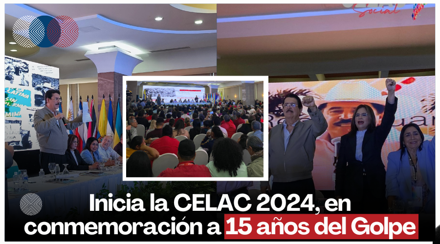 Este jueves arrancó la CELAC 2024, un evento que acoge el encuentro de movimientos y organizaciones sociales de la Comunidad de Estados Latinoamericanos y Caribeños (CELAC). Esto en el marco de la conmemoración de los 15 años del Golpe de Estado contra el Presidente José Manuel Zelaya Rosales.