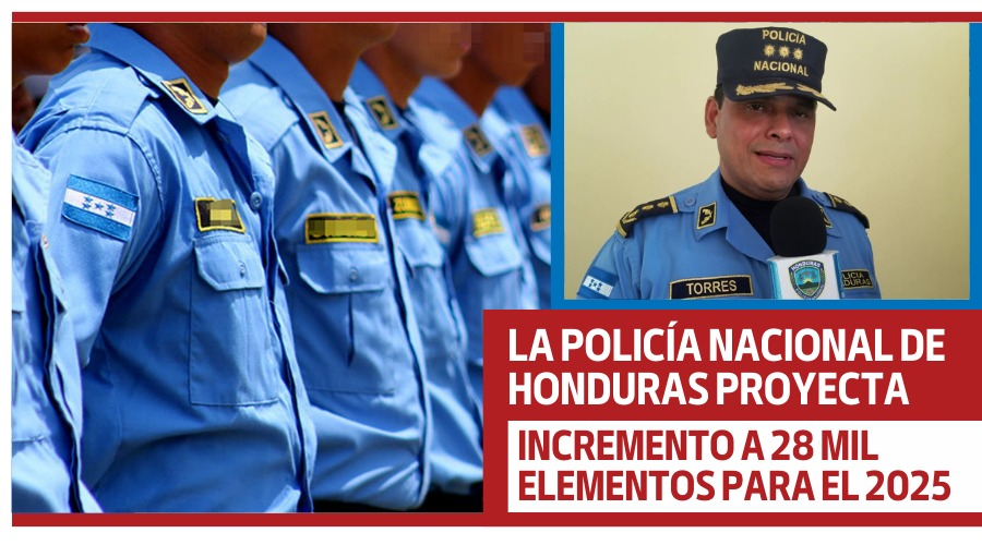 El subdirector de la Policía Nacional de Honduras, Wilmer Torres Saavedra, compartió que se tiene la proyección de contar con 28 mil elementos policiales para el año 2025. Esta expansión forma parte de los esfuerzos continuos para fortalecer la seguridad en el país.