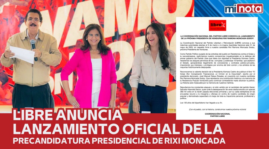 La Coordinación Nacional del Partido Libertad y Refundación (LIBRE) convocó a Asamblea Nacional para el próximo 31 de mayo de 2025. Evento de importancia donde se hará oficial la precandidatura presidencial de Rixi Moncada, considerada por el pueblo como la próxima presidenta de Honduras.