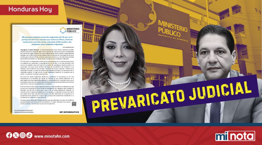 La Unidad Especializada Contra Delitos Electorales (UECDE) del Ministerio Público (MP) presentó una solicitud de antejuicio ante la Corte Suprema de Justicia (CSJ) contra dos magistrados del Tribunal de Justicia Electoral (TJE): Mario Alberto Flores Urrutia y Miriam Suyapa Barahona Rodríguez. Se les imputa el delito de prevaricato judicial.