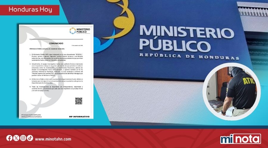 El Ministerio Público (MP) informó este día que continúa con las investigaciones del caso denominado “SEDESOL”, reafirmando su compromiso con la transparencia y la aplicación de la justicia.