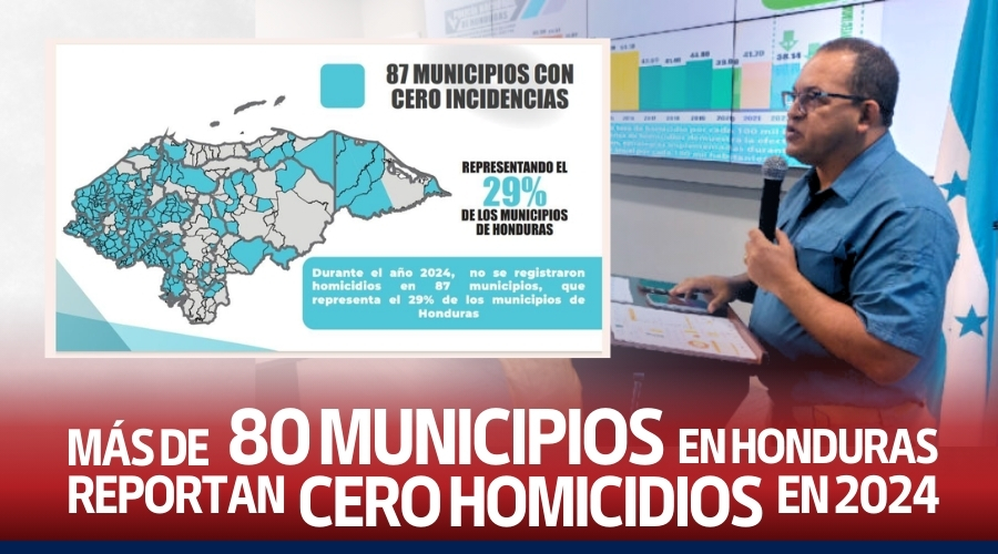 El Secretario de Seguridad, Gustavo Sánchez Velásquez, anunció que 87 municipios en Honduras, que representa el 29% del territorio nacional. No han registrado ningún homicidio en lo que va del año 2024.