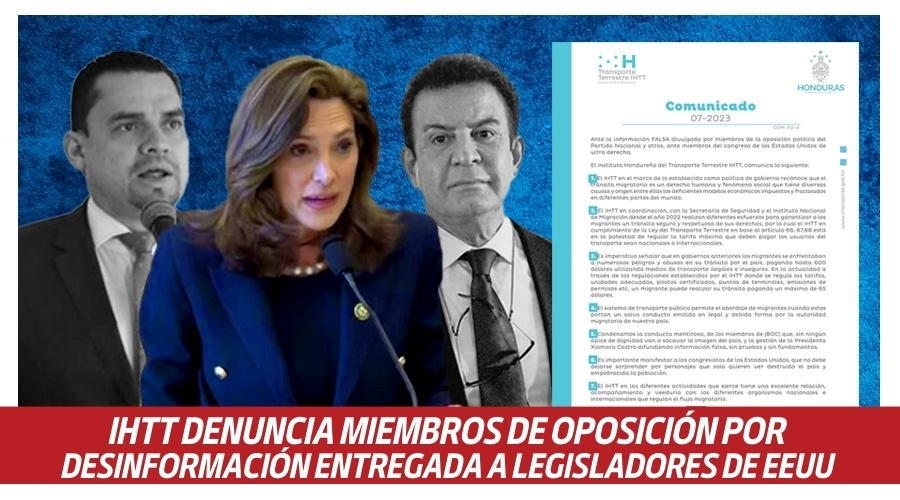 El día de hoy el Instituto Nacional De Transporte Terrestre ha denunciado de forma pública a los miembros del Partido Nacional y a terceras personas, por la información falsa dada a los legisladores del congreso de los Estados Unidos de América.
