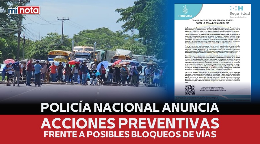 La Secretaría de Estado en el Despacho de Seguridad, a través de la Policía Nacional de Honduras, emitió un comunicado oficial, el cual aborda las medidas que se tomarán ante la amenaza de paralización de las principales carreteras del país, particularmente en la zona norte y la región oriental (Danlí).
