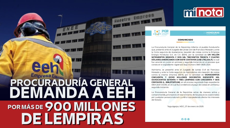 Asimismo, en otro proceso identificado con el expediente 0801-2021-04035, la PGR presentó otra tasación de costas contra EEH por un monto de 858,217,873.56 lempiras. En este caso, la empresa también fue condenada en ambas instancias, por lo que el Estado busca cobrarse los costos legales derivados de la demanda.