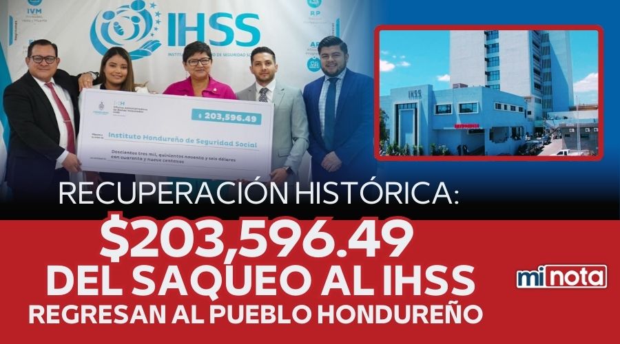 La lucha por la justicia continúa en Honduras con la recuperación de fondos del desfalco al Instituto Hondureño de Seguridad Social (IHSS). En un acto protocolario, la Dra. Carla Paredes, presidenta de la Comisión Interventora del IHSS, recibió un cheque por $203,596.49, repatriados desde Chile como parte del proceso de recuperación de bienes saqueados durante el histórico desfalco que afectó a la institución en 2015.