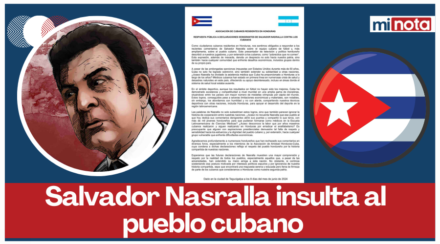 La Asociación de Cubanos Residentes en Honduras, por medio de un comunicado, respondió a las declaraciones de Salvador Nasralla en contra del país.