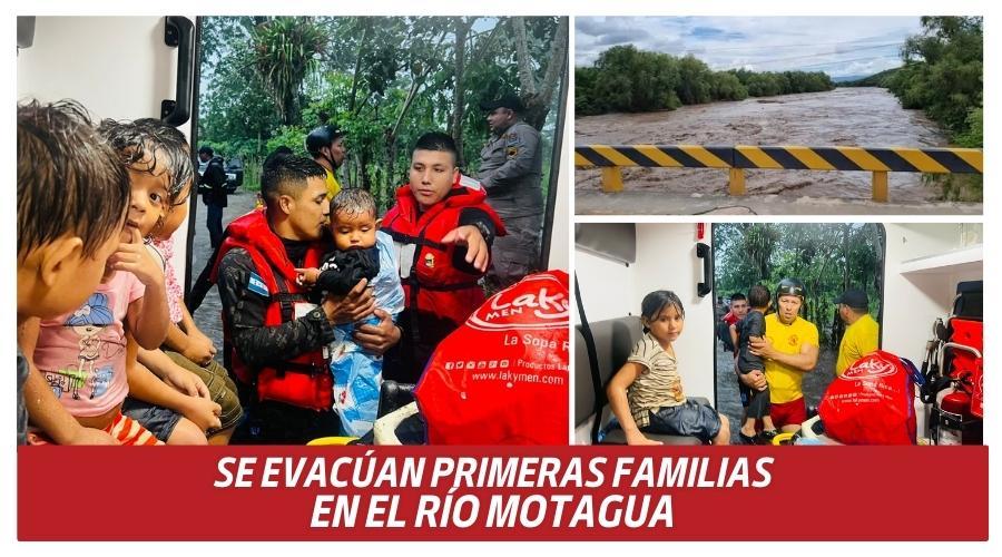 Las lluvias han provocado la crecida del Río Motagua, lo que alertó a los residentes de la zona. Minutos después, se informó que el río había alcanzado su nivel máximo, saliéndose de su cauce.