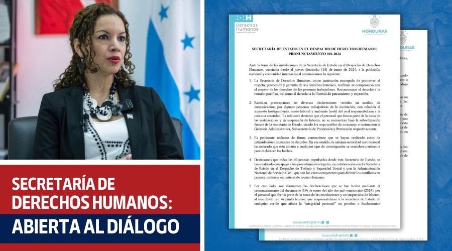 En este importante comunicado se resalta que, como ente encargado de promover el respeto, brindar protección y garantizar los derechos humanos, la SEDH cumple plenamente en proteger y respetar al personal que labora en la Institución.