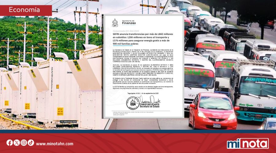 La Secretaría de Estado en el Despacho de Finanzas (SEFIN), anunció la transferencia de un total de L842,636,412.02 en subsidios para el sector transporte y la energía eléctrica, beneficiando a miles de hondureños.
