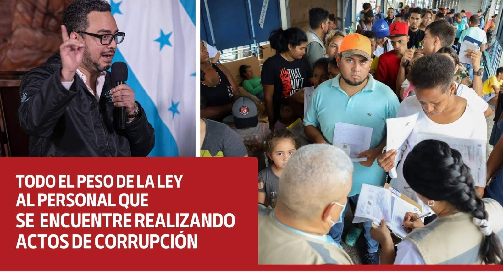 “A la persona que se le cache, como decimos nosotros aquí en el hondureñismo, haciendo un acto de corrupción tratando de hacer un cobro ilegal, se le va a deducir la responsabilidad penal civil y administrativa correspondiente”, dijo Alvarenga.