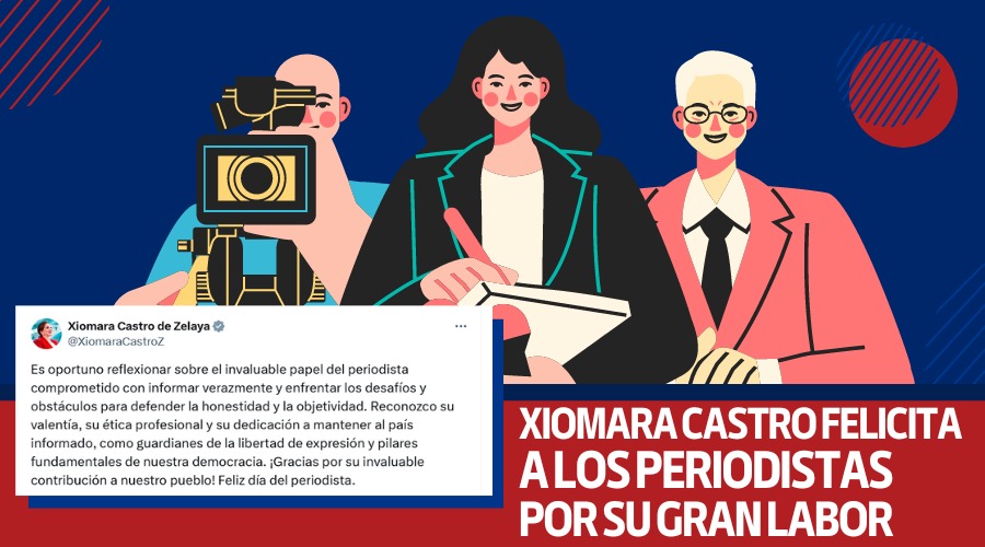 La Presidenta de la República Xiomara Castro, felicitó a los periodistas hondureños por su invaluable contribución al pueblo. Así mismo, Xiomara Castro. A través de su cuenta en la plataforma X, destacó la importancia del trabajo periodístico en la sociedad y agradeció su compromiso con la verdad y la objetividad.